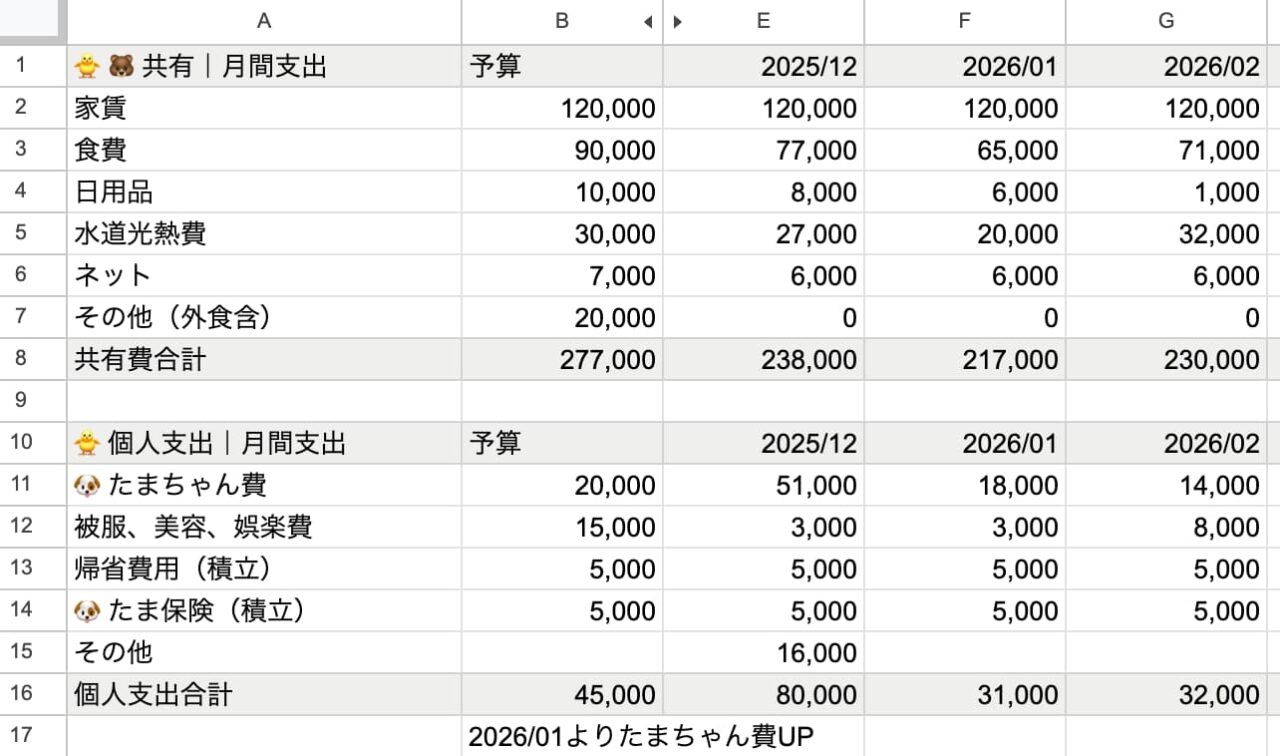 二人暮らしの家計簿